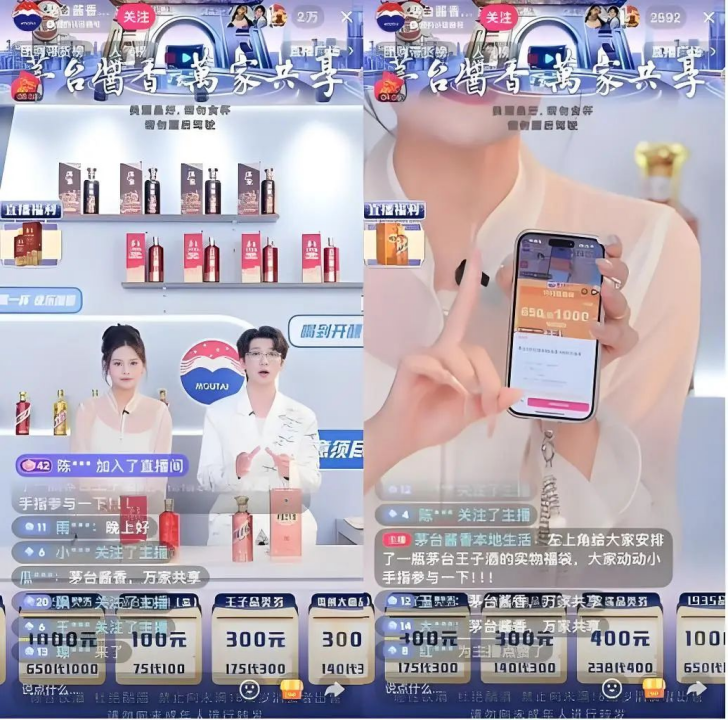 回顧茅臺與各平臺的互動歷程,可謂是不斷探索、逐步深入。早在2019年,貴州茅臺就大力拓展電商、商超及賣場渠道。2020年初的淘寶年貨節(jié)上,2100萬人擠進超頭主播薇婭直播間,500瓶2018年的飛天茅臺瞬間售罄,這一事件充分展示了電商平臺的強大帶貨能力,也促使茅臺更加重視線上渠道。此后,羅永浩、李國慶、潘長江等一眾名人在直播平臺直播賣茅臺酒,進一步提升了茅臺酒在直播電商領域的熱度。