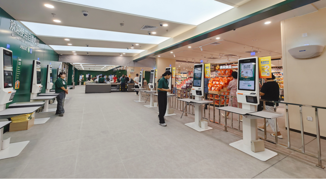 服務(wù)便利度同樣拉滿。線下門店配備人工收銀臺(tái)與30臺(tái)自助收銀設(shè)備,高峰時(shí)段無需排長(zhǎng)隊(duì);自助打包臺(tái)提供免費(fèi)購物袋、膠帶、剪刀,方便整理商品;休息區(qū)的免費(fèi)熱水,為逛累的顧客提供歇腳之處,工作人員還會(huì)主動(dòng)幫扶行動(dòng)不便的老人。