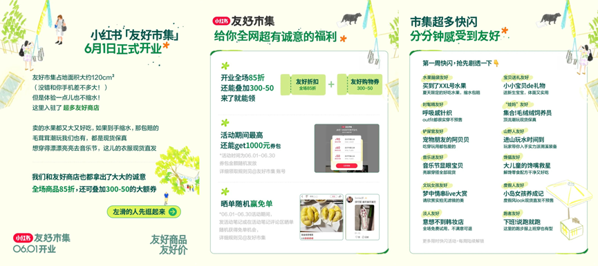 2025年6月1日,小紅書電商“友好市集”開業(yè),符合“商品友好、服務(wù)友好、價格也友好”理念的商家可報名入選。小紅書將為入選的優(yōu)質(zhì)商品提供超10億社區(qū)流量傾斜,并提供“友好市集”專屬標(biāo)簽。