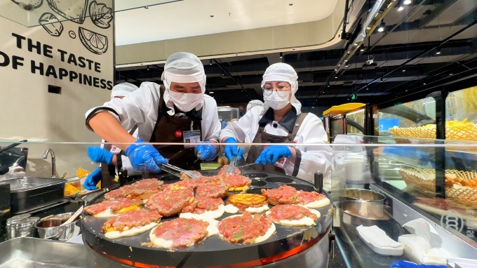 針對(duì)顧客本地口味需求突出的特點(diǎn),門(mén)店特意擴(kuò)充了老北京特色商品矩陣:平谷大桃從采摘到上架不超過(guò)24小時(shí),龐各莊西瓜甜度數(shù)值清晰可見(jiàn);本地風(fēng)味炸糕、驢打滾、艾窩窩每日新鮮現(xiàn)做,全聚德、月盛齋、大紅門(mén)、義利、北冰洋、牛欄山等老字號(hào)品牌商品一站式購(gòu)齊。年輕消費(fèi)者也能找到歸屬感,山茶花山泉吐司、“豐收的喜悅”歐包等“現(xiàn)烤現(xiàn)賣(mài)”柜臺(tái)前常排起長(zhǎng)隊(duì),多口味奶油杯、牛乳蛋糕魯谷店獨(dú)家供應(yīng),北京烤鴨推出“半只裝”,貼心滿(mǎn)足小家庭需求,這些細(xì)節(jié)調(diào)整讓“家門(mén)口的超市”既有煙火氣,又不失新鮮感。