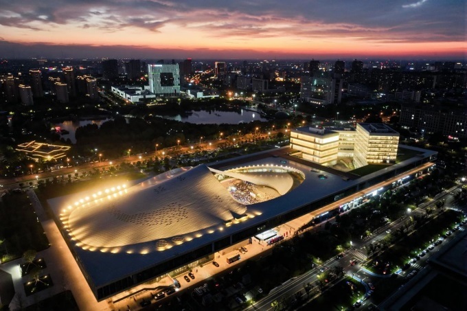 從航拍鏡頭俯瞰,整個(gè)文化中心猶如奔赴遠(yuǎn)方的船舶,而靖江大劇院恰似船頭,引領(lǐng)這艘“文化航母”破浪起航。大劇場(chǎng)觀眾廳可容納1200人同時(shí)觀演,劇院打破藝術(shù)“曲高和寡”壁壘,打造集觀劇、交流、體驗(yàn)、互動(dòng)于一體的文化藝術(shù)殿堂,構(gòu)建“名家名團(tuán)+本土院團(tuán)”多元演出體系,讓劇院成為惠民服務(wù)的主陣地。先后舉辦中國(guó)交響樂(lè)團(tuán)新年音樂(lè)會(huì)、楊麗萍作品《平潭映象》、中國(guó)歌劇舞劇院舞劇《趙氏孤兒》等精品劇目,錫劇《雙珠鳳》、越劇《織造府》等經(jīng)典戲曲等。靖江大劇院自投入運(yùn)營(yíng)以來(lái),累計(jì)舉辦各類演出211場(chǎng),累計(jì)接待觀眾超20萬(wàn)人次,其中外地觀眾約占20%,平均上座率達(dá)80%。
