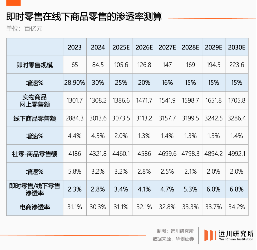 按照各大券商的測(cè)算,即便最樂觀的估計(jì),即時(shí)零售的滲透率也很難超過10%。