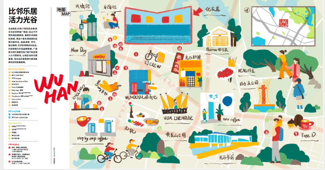 另一方面將文化共創(chuàng)場景化。開業(yè)前夕(8月25日),光谷世界城廣場店發(fā)起「優(yōu)衣庫光谷生活著色本」共創(chuàng)活動,攜手UTme!合作藝術(shù)家鄭國慶,與武漢高校學生代表等,共同參與創(chuàng)作,以藝術(shù)形式具象化光谷區(qū)域生活場景,構(gòu)建品牌與年輕群體的文化互動場景。