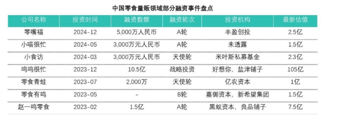 另一方面,資本的介入也加速了行業(yè)變革,推動著行業(yè)向品牌化、規(guī);l(fā)展。2020年以來,資本市場對零食行業(yè)的投融資事件持續(xù)增加,其中,量販零食店一直都是資本的重點關(guān)注賽道。