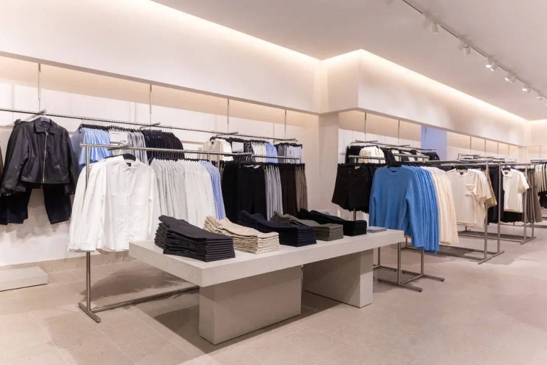 更多的升級(jí)在于和消費(fèi)者「互動(dòng)」,巨幅落地鏡搭配柔和燈光打造出來(lái)的摩登試衣間,憑借著強(qiáng)大的出片能力成為吸引消費(fèi)者的社交打卡地;將「零售空間」讓渡為「社交空間」的休息區(qū),更能吸引顧客停留、休閑、社交,「留白」讓門(mén)店變成社交場(chǎng)和「秀場(chǎng)」,傳達(dá)品牌「愜意」生活方式和理念,強(qiáng)化消費(fèi)者情感鏈接。