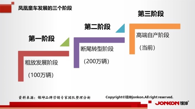 回顧過往,鳳凰童車經(jīng)歷了粗放發(fā)展、斷尾轉(zhuǎn)型、高端自產(chǎn)三大階段,從為了求生存而大量向ODM、OEM進(jìn)行品牌授權(quán),到對ODM、OEM進(jìn)行淘汰優(yōu)化,再到逐步把童車轉(zhuǎn)向自產(chǎn)。“鳳凰精品童車”的打造就是鳳凰逐步推進(jìn)高端童車自產(chǎn)的重大標(biāo)志。