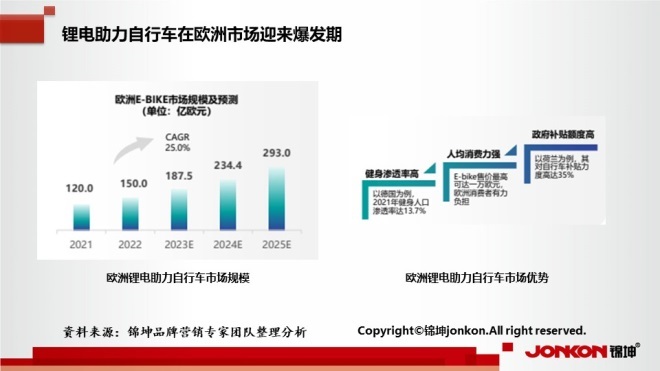 健身滲透率高、人均消費能力強、政府補貼高等因素共同造就了歐洲中高端鋰電助力自行車的飛速增長。