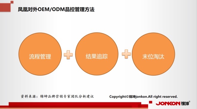 因此,錦坤品牌營銷專家團(tuán)建議鳳凰制定嚴(yán)格的品控執(zhí)行流程,對檢驗檢測進(jìn)行規(guī)范,執(zhí)行措施辦法,真正落地品控管理。