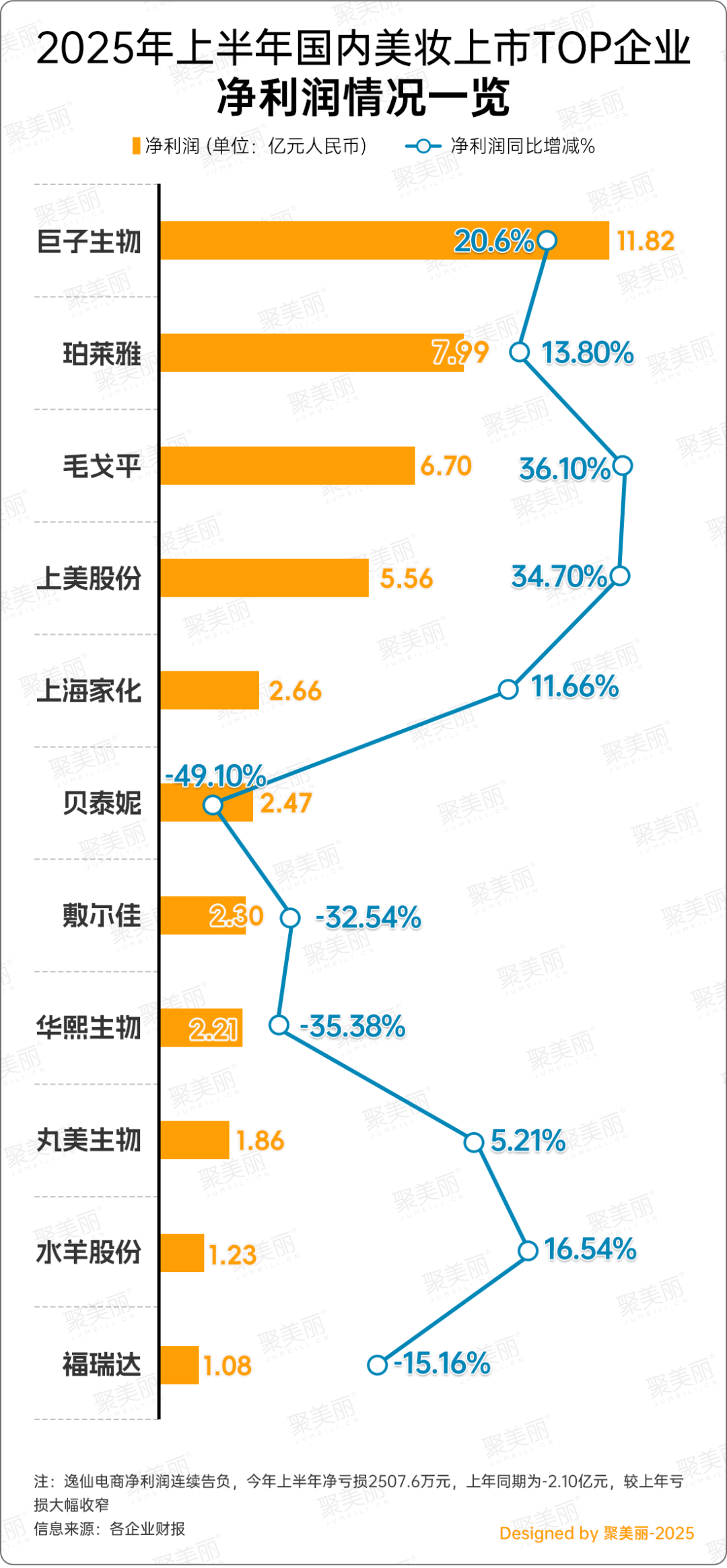 聚焦2025年上半年財(cái)報(bào),本次國(guó)內(nèi)美妝上市企業(yè)TOP榜發(fā)生了變化: