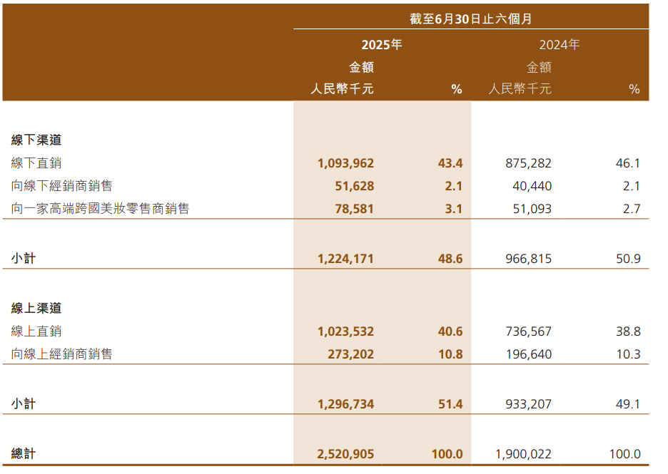 值得關(guān)注的是,毛戈平上半年線上直銷渠道營(yíng)收占比為40.6%,也就是說(shuō),在直銷層面,毛戈平的線下銷售是高于線上的。