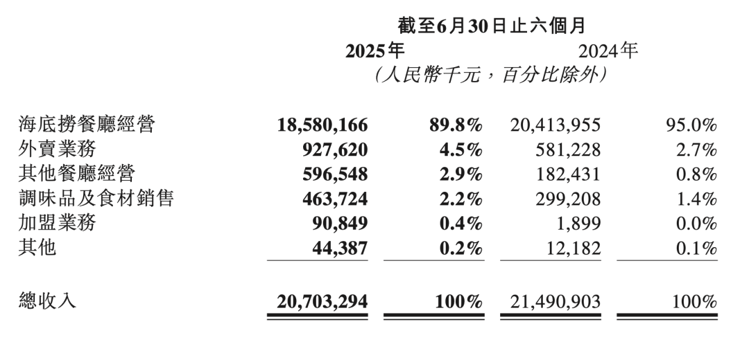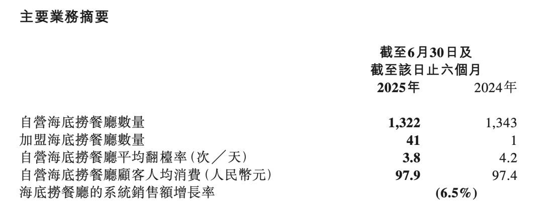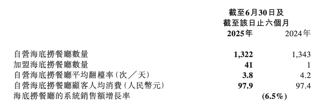 財報顯示,截止到2025年上半年末,海底撈加盟店的數(shù)量為41家,相比去年同期增加40家。此外,期內加盟業(yè)務為海底撈貢獻的營收為0.9億元,在總營收中的占比為0.4%。