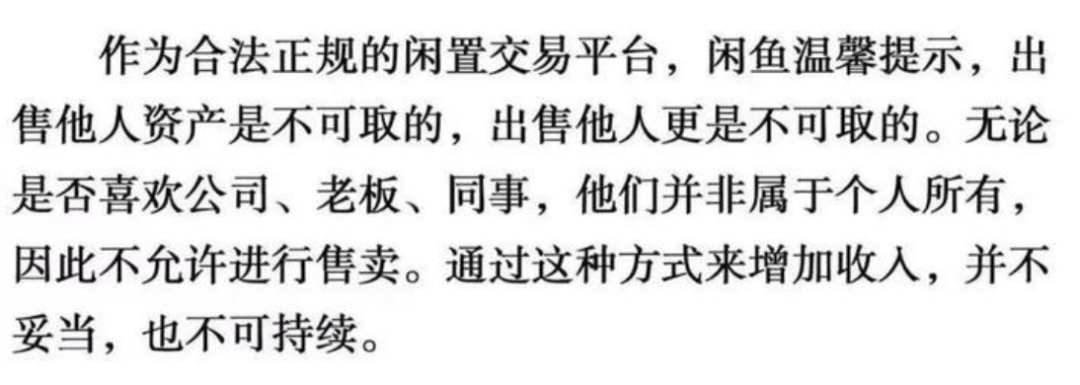 閑魚(yú)關(guān)于用戶“出售”老板同事的聲明
