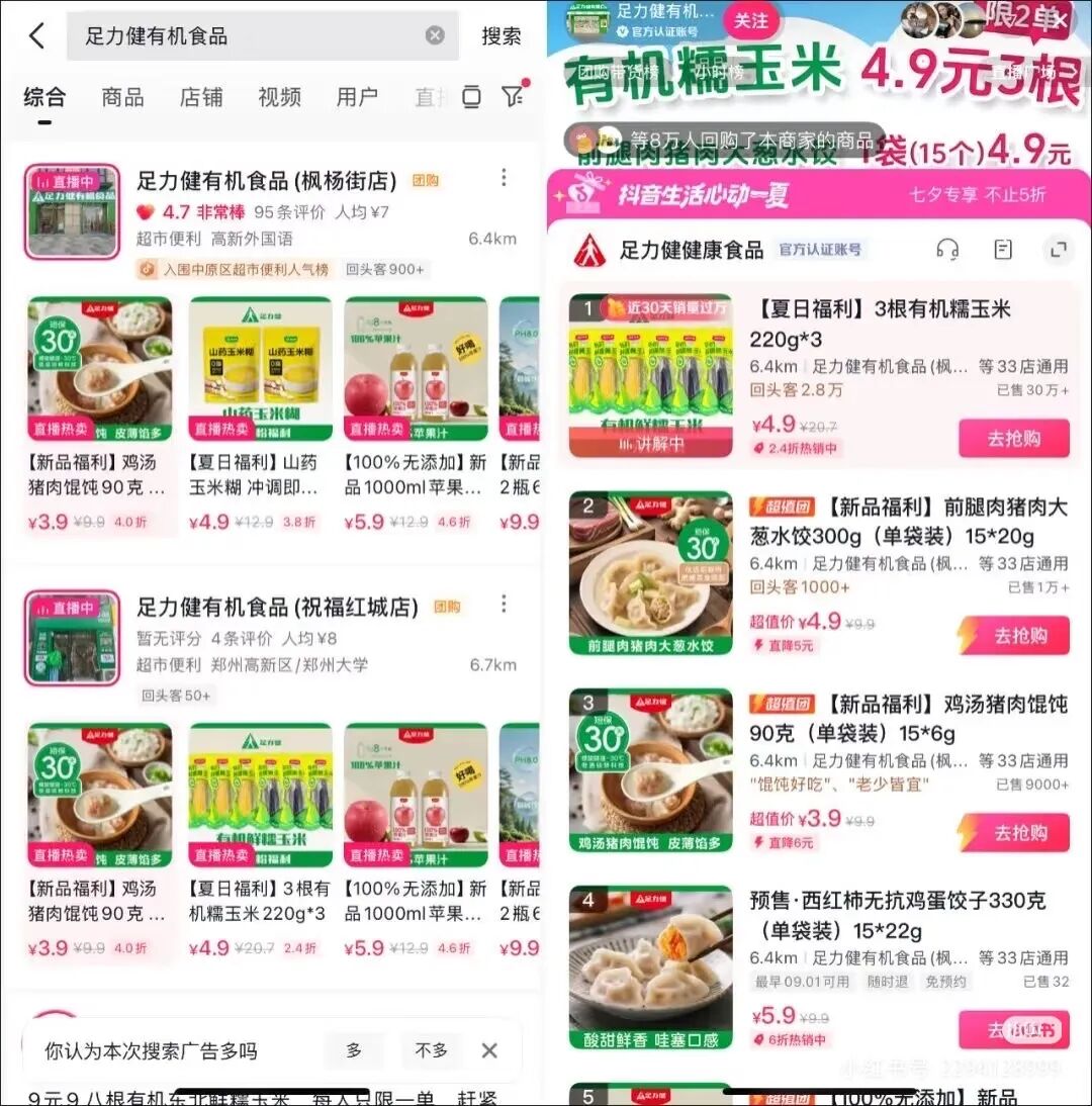 4.9元一袋的前腿肉速凍水餃、3.9元一袋的雞湯豬肉餛飩、4.9元三根有機(jī)糯玉米、9.9元15個(gè)鮮雞蛋......乍一看你可能會(huì)覺(jué)得這是哪個(gè)商超在搞促銷(xiāo),但實(shí)際上,這是足力健健康食品直播間的商品價(jià)格。足力健、食品,這兩個(gè)詞單拎出來(lái)都沒(méi)毛病,但組合在一起卻有了一種魔幻之感。