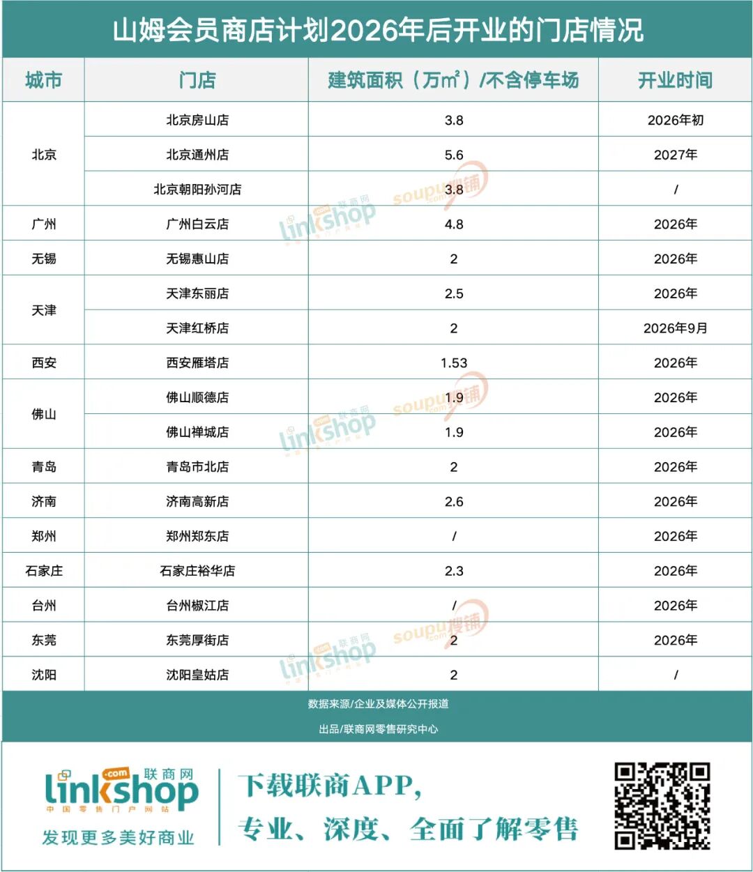 同時,據(jù)聯(lián)商網(wǎng)不完全統(tǒng)計,2026年及以后全國預(yù)計開業(yè)的17家山姆中,北方城市有11家,占比超64%。