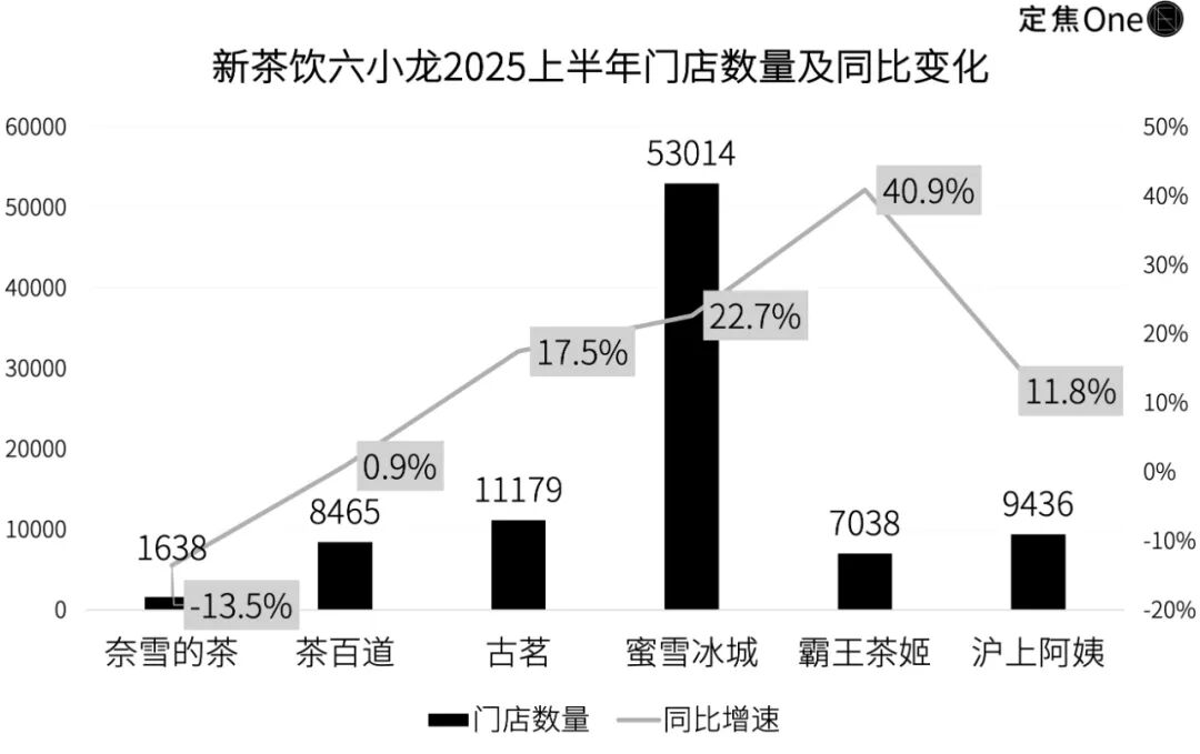 蜜雪冰城以148.7億元繼續(xù)領(lǐng)跑行業(yè),體量大幅領(lǐng)先;第二梯隊(duì)中,霸王茶姬(67.2億元)與古茗(56.6億元)展開競(jìng)爭(zhēng);茶百道(25億元)、奈雪的茶(21.8億元)、滬上阿姨(18.2億元)則處于第三梯隊(duì)。