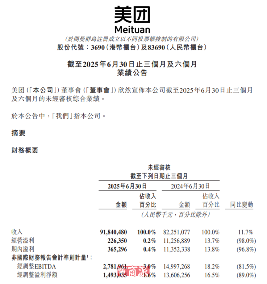 美團作為本地生活市場的霸主,在受到來自京東的挑戰(zhàn)之后,在補貼、騎手待遇、外賣品質(zhì)等多方面上集中大量資源,迅速回?fù)魧κ,基本成功保住了自己行業(yè)頭部的地位。但巨大的營銷支出侵蝕了美團的盈利,第二季度美團凈利潤為3.65億元,同比暴跌九成,幾乎跌完了。