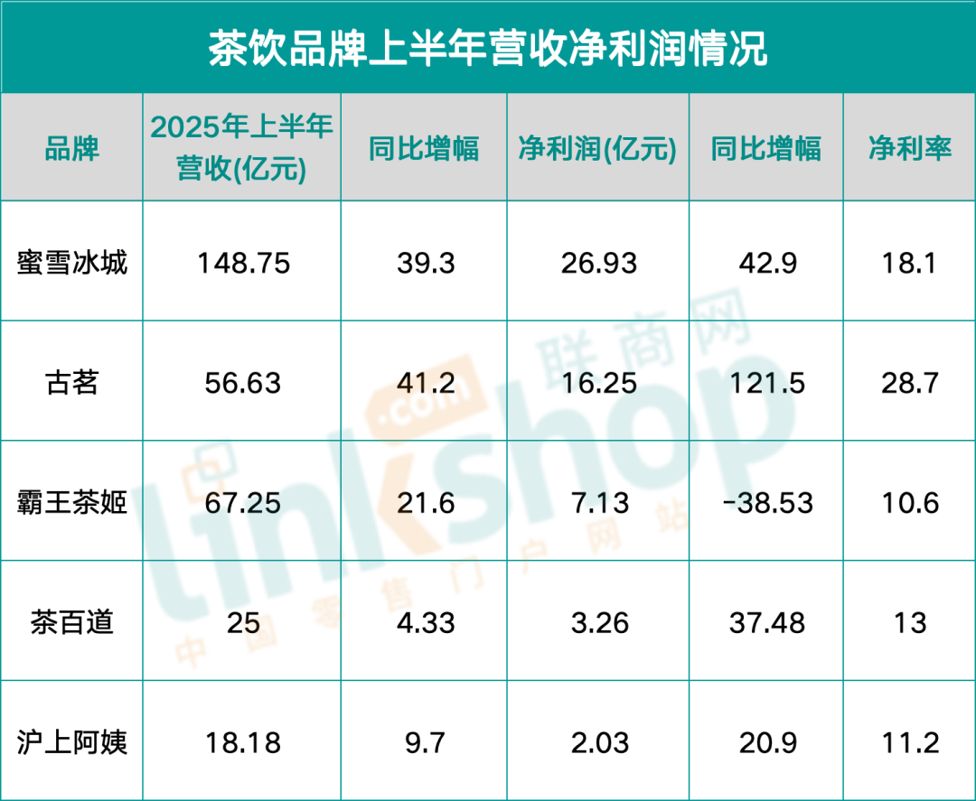 這張成績(jī)單有多能打?看數(shù)據(jù)就懂:上半年?duì)I收56.63億元,同比增長(zhǎng)41.2%,增速跑贏蜜雪冰城(39.3%)、霸王茶姬(21.6%);凈利潤(rùn)16.25億元,同比增長(zhǎng)121.5%,28.7%的凈利率更是遠(yuǎn)超蜜雪冰城(18.1%)、霸王茶姬(10.6%),成為頭部品牌里的“盈利黑馬”。