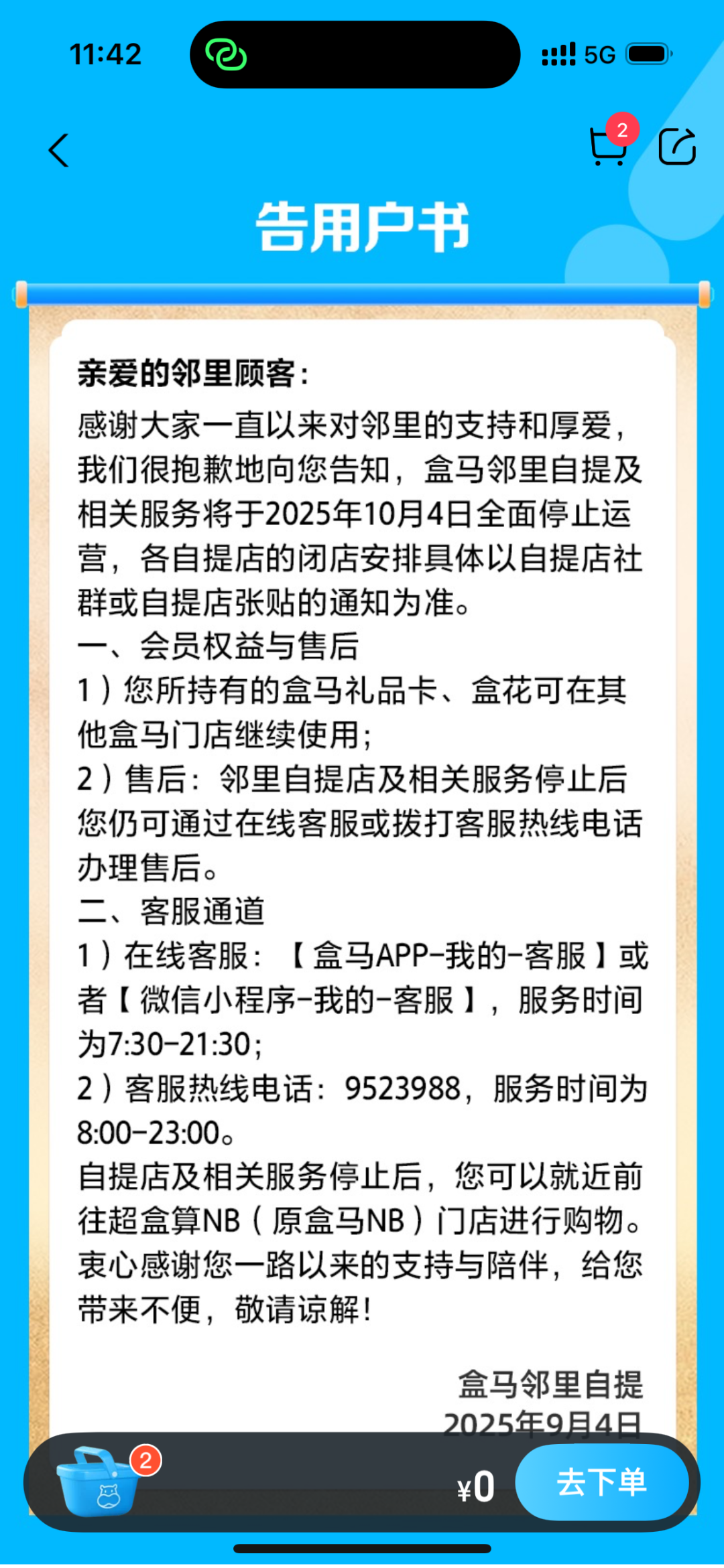 9月4日,盒馬鄰里自提(盒馬NB自提)宣布,盒馬鄰里自提及相關(guān)服務將于10月4日起全面停止運營。