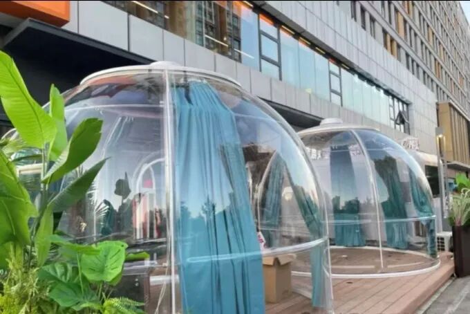 外區(qū):涵蓋5個(gè)泡泡屋、1輛早餐車及外擺座位(外擺區(qū)共設(shè)6張桌子),外擺區(qū)可用于等餐或露天用餐,泡泡屋則相對(duì)私密,兼具包間功能。