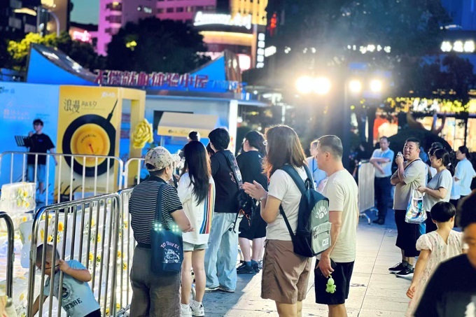 傳統(tǒng)與現(xiàn)代碰撞更具張力:古風(fēng)魚燈巡游與KPOP隨機(jī)舞蹈同框,漢服使者托流光魚燈穿行,轉(zhuǎn)身便遇年輕人隨韓流勁歌熱舞;江陰場(chǎng)“邊擼串邊看蘇超直播”的市井熱鬧,契合各年齡層“輕松過節(jié)”需求。雖元素多元,卻始終圍繞“浪漫”核心,在時(shí)空折疊中覆蓋不同客群偏好,留下獨(dú)特七夕記憶。