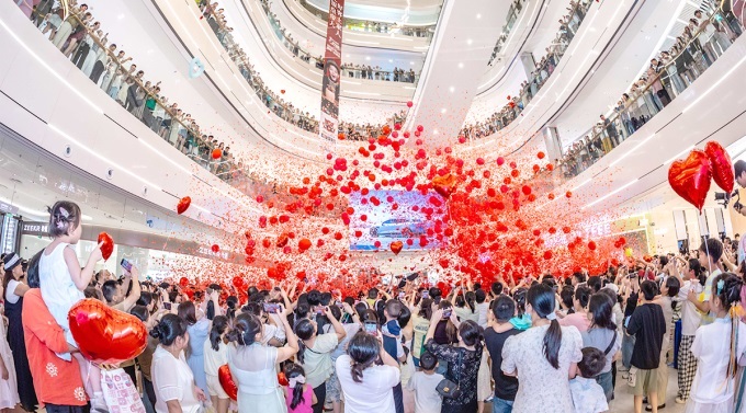 在促銷設(shè)計(jì)上,八佰伴搭建起多層次優(yōu)惠體系,高效激活消費(fèi)需求。滿折、滿減、券升值等組合優(yōu)惠精準(zhǔn)發(fā)力,推動(dòng)化妝品銷售同比上漲,黃金珠寶柜臺(tái)更因人氣火爆需限流;嘉興場(chǎng)聯(lián)動(dòng)本地媒體與水果商打造“超甜節(jié)”,7米熱氣球吸睛引流,搭配“滿贈(zèng)餐飲券”策略,助力餐飲業(yè)態(tài)客流同比增長(zhǎng)。“浪漫不息氣球雨”則將促銷游戲化,百份好禮藏于氣球中,疊加熱舞表演營(yíng)造儀式感,活動(dòng)當(dāng)晚會(huì)員復(fù)購率顯著提升。