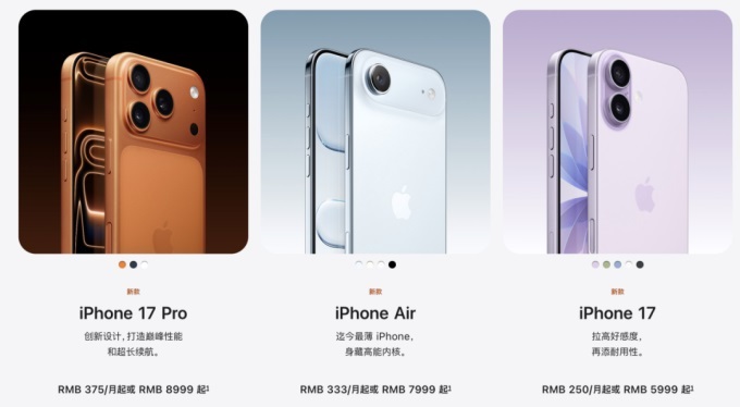蘋果iPhone17售價公布,最貴17999元