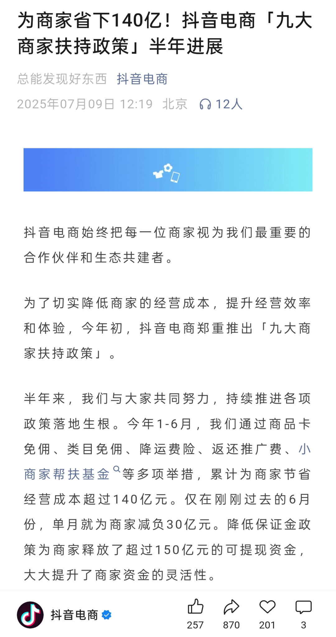 具體來看,今年年初,抖音電商為商家推出了包含商品卡免傭、類目免傭、降運(yùn)費(fèi)險(xiǎn)、返還推廣費(fèi)、小商家?guī)头龌鸬染糯蠓龀终,以降低商家運(yùn)營成本,改善商家體驗(yàn)。