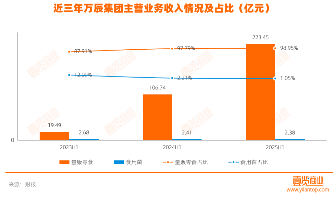 從營(yíng)收看,2025年上半年,萬(wàn)辰集團(tuán)營(yíng)收225.83億元,同比增長(zhǎng)106.89%。進(jìn)一步拆解業(yè)務(wù)結(jié)構(gòu),量販零食業(yè)務(wù)貢獻(xiàn)了223.45億元營(yíng)收,占集團(tuán)總營(yíng)收的98.95%,同比增長(zhǎng)109.33%,成為業(yè)績(jī)?cè)鲩L(zhǎng)的絕對(duì)主力。