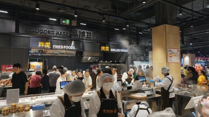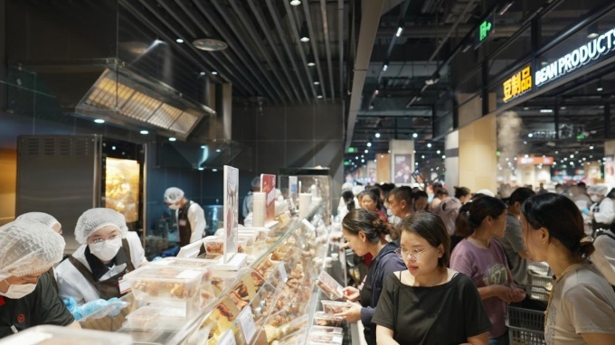 熟食烘焙區(qū)的改變讓人眼前一亮。不僅引入了胖東來同款的去骨豬蹄、小甜腸、牛肉干等網(wǎng)紅產(chǎn)品,還保留了北京烤鴨、韓式炸雞、土家鮮肉餅等深受消費(fèi)者喜愛的風(fēng)味美食。明檔廚房現(xiàn)場制作,讓顧客能夠享受到熱氣騰騰的即食美味。烘焙品類的爆發(fā)式增長成為本次調(diào)改的重要成果。
