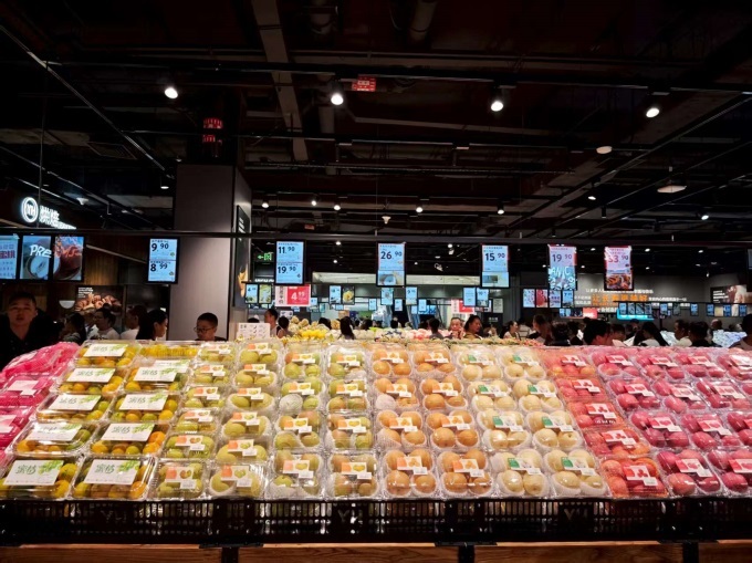 在商品革新之外,永輝凱誼世紀(jì)廣場店更以“空間革命”重塑購物體驗(yàn)。賣場全面取消強(qiáng)制動(dòng)線設(shè)計(jì),過道拓寬至2米,增設(shè)27臺(tái)自助收銀機(jī)臺(tái),中島貨架統(tǒng)一降至1.6米,讓視線通透無阻,行動(dòng)自由無拘。這種“去壁壘化”布局,使老年顧客推車緩行、年輕群體快速穿行皆可各得其所。