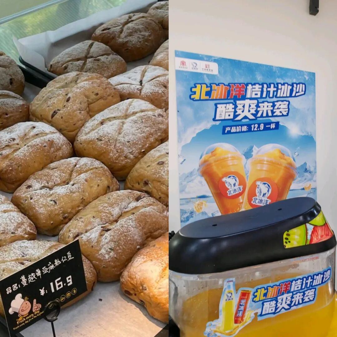 與以往的店型不同,它不是開在社區(qū),而是開在景區(qū),不僅賣“現(xiàn)烤烘焙”+“現(xiàn)打冰沙”,還賣麻醬冰淇淋、紅星二鍋頭冰淇淋等創(chuàng)新潮流單品,能外帶也能堂食,日銷面包超過1300個(gè)。