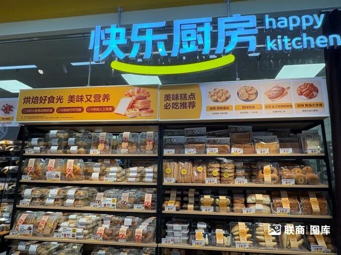 新推出的“快樂猴”超市延續(xù)了這一商品策略,在門店定位、商品結(jié)構(gòu)和自有品牌策略上形成鮮明特色?鞓泛餅樽杂泄⿷(yīng)鏈,產(chǎn)品包括果蔬、烘焙、米面糧油以及日常用品,同時(shí)包含大量自有品牌商品,通過差異化的商品組合吸引目標(biāo)客群。這種聚焦自有品牌、打造差異化優(yōu)勢的策略,有效避開了與傳統(tǒng)商超的正面競爭。