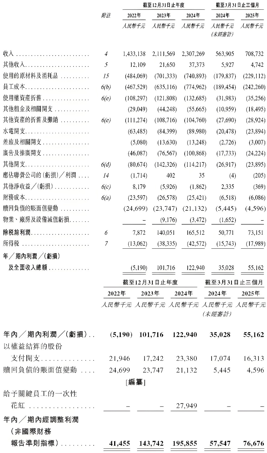 三則,為了保證菜品質(zhì)量和品牌一致性,巴奴火鍋一直堅持直營模式,帶來了較高的運營成本和擴張限制。2025年第一季度,巴奴火鍋的原材料及消耗品、員工成本、使用權資產(chǎn)折舊及租金相關開支,合計占總收入的超七成。
