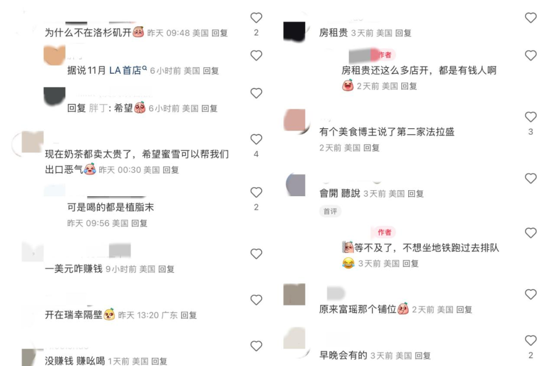 另有消息稱(chēng),蜜雪冰城將于11月在洛杉磯開(kāi)設(shè)門(mén)店,紐約法拉盛王子街店也在籌備之中。
