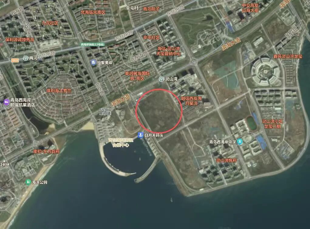 網(wǎng)傳K11青島西海岸項目落位,圖片來源:百度地圖,商業(yè)客整理