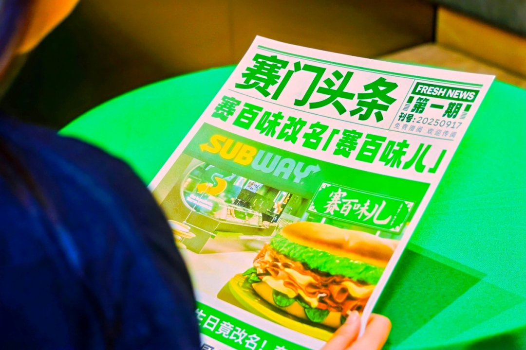 與推出具有北京傳統(tǒng)“炙子烤肉” 風(fēng)味的新品、更換“賽百味兒” 頭像等舉措相配合的是,9月17日,賽百味還在全國(guó)所有門(mén)店“發(fā)行”首份“賽門(mén)頭條”報(bào)紙,報(bào)紙采用胡同報(bào)紙的視覺(jué)風(fēng)格,展現(xiàn)了新品“星廚炙感”系列信息,將傳統(tǒng)媒介轉(zhuǎn)化為互動(dòng)載體,進(jìn)一步引發(fā)了年輕消費(fèi)者的好奇與關(guān)注,在社交媒體上形成二次傳播。