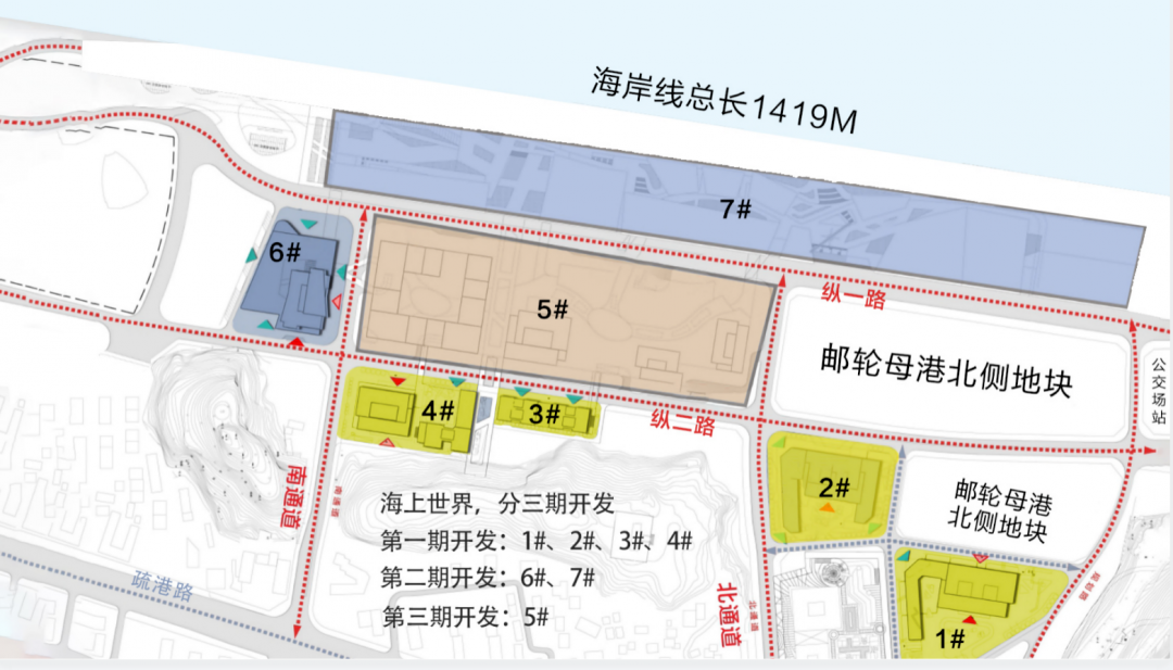 具體分為約36.6萬(wàn)平方米甲級(jí)寫(xiě)字樓;約22萬(wàn)平方米零售商業(yè);約7.48萬(wàn)平方米文化娛樂(lè)設(shè)施;約8.3萬(wàn)平方米酒店集群;約5萬(wàn)平方米郵輪母港航站樓;27.8萬(wàn)平方米地下建筑。