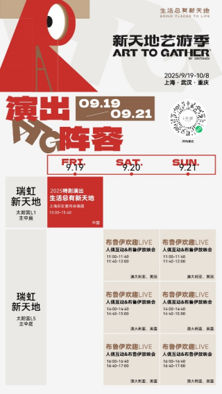 「Art To Gather 新天地藝游季」秉持“場所即劇場,日常即藝術(shù)”理念,將于9月19日至21日亮相瑞虹新天地社區(qū),推出多項獨家藝術(shù)活動與演出。
