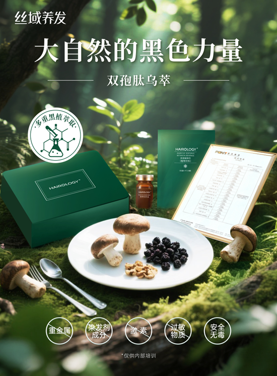 此外,絲域敏銳洞察養(yǎng)發(fā)行業(yè)發(fā)展變化,經(jīng)科學(xué)論證后勇于開展前沿創(chuàng)新,發(fā)力探索 “妝食同源” 新風(fēng)向,成功推出 “食用菌黑發(fā)雙孢肽產(chǎn)品”。該產(chǎn)品作用機理不同于市場上現(xiàn)有任何染發(fā)產(chǎn)品,不含化學(xué)染色物質(zhì)、氨水等堿性成分及雙氧水等強氧化劑,相關(guān)技術(shù)已獲得三項中國授權(quán)發(fā)明專利。
