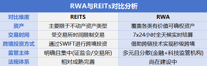 在資本市場上,不少投資者會(huì)將RWA與REITs做比較,兩者最大的共性在于通過資產(chǎn)拆分,轉(zhuǎn)化為可交易的金融工具,實(shí)現(xiàn)資產(chǎn)的流動(dòng)性提升,俗稱降低投資門檻,提高資產(chǎn)流動(dòng)性。