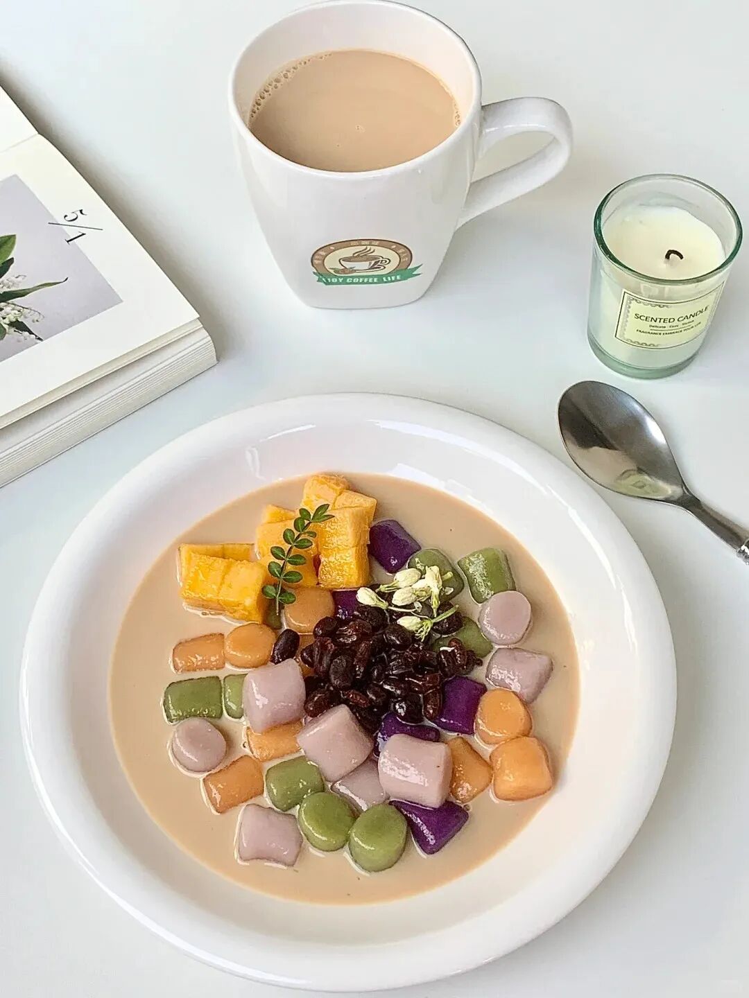 在盛夏點一碗冰冰涼綠豆沙,在嚴冬捧一杯熱乎的姜薯芋圓。這種「因時而食」的古老智慧,給人一種順應(yīng)自然、踏實生活的安定感,仿佛身體和情緒都得到了照顧。