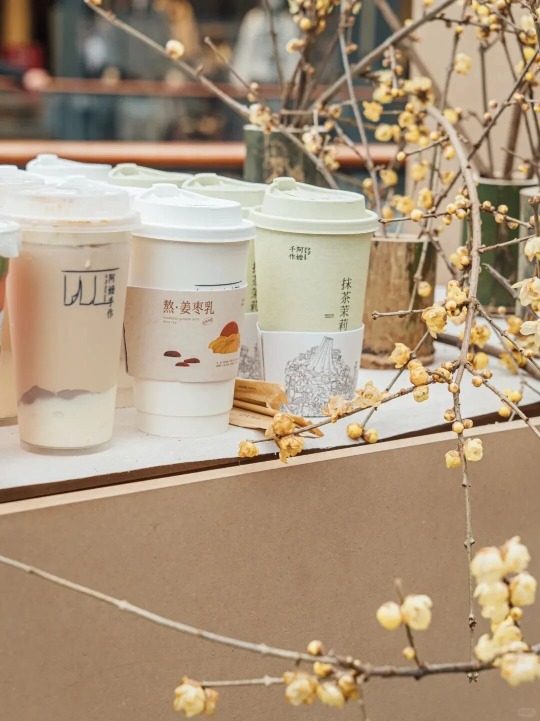 門店設(shè)計上,多數(shù)品牌運用原木色桌椅、暖黃燈光、竹編燈籠等元素,融合古樸雅致的綠植,這樣的環(huán)境很快會讓人放松下來。