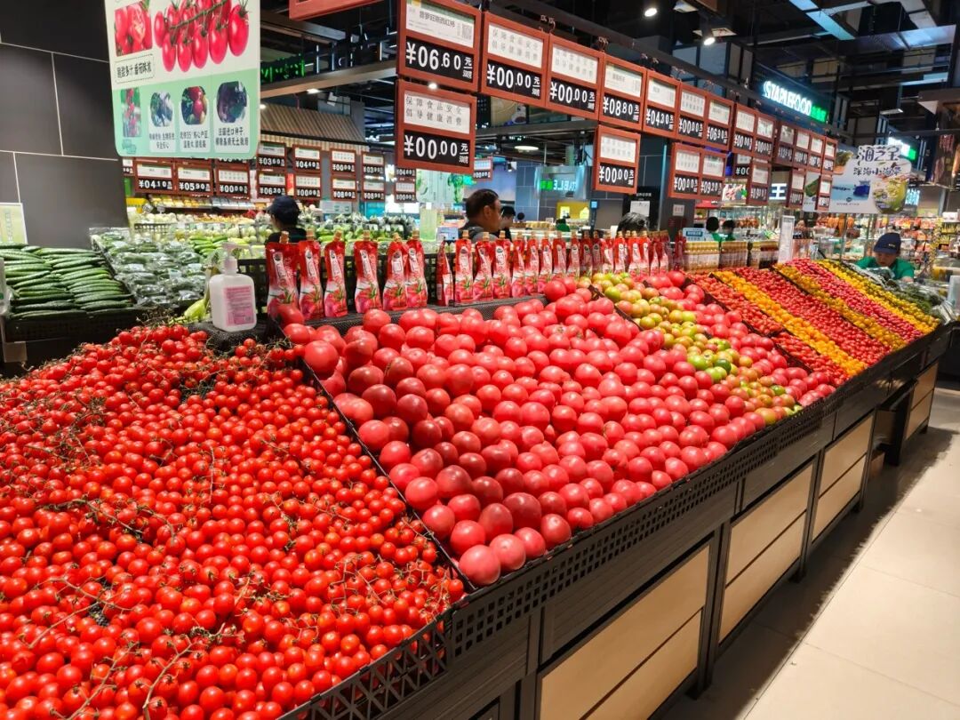 另一個(gè)細(xì)節(jié)是,信譽(yù)樓超市內(nèi)不同種類的西紅柿、圣女果都擺放在一個(gè)堆頭,不僅消費(fèi)者挑選購(gòu)買時(shí)更方便,從視覺上也更明亮顯眼。