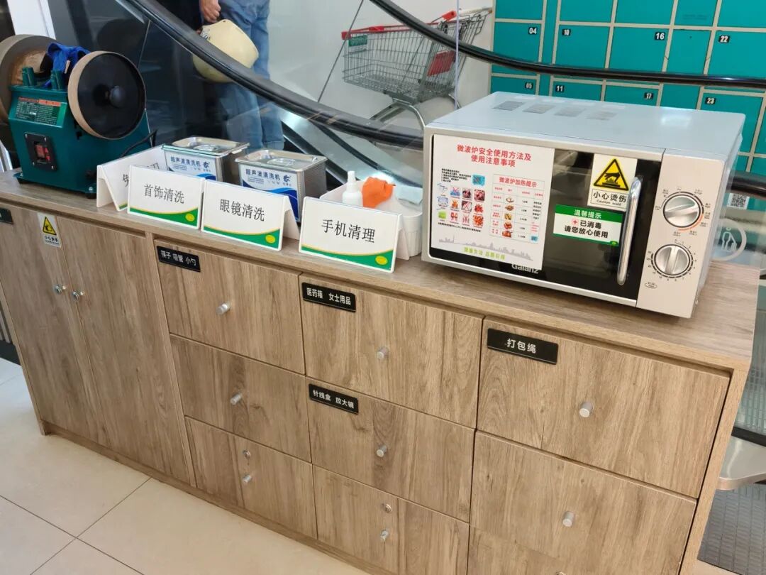 例如,其自助服務(wù)臺(tái)雖提供微波爐加熱、手機(jī)清理、眼鏡及首飾清潔等服務(wù),但區(qū)域面積較小且遠(yuǎn)離超市出入口,便利性不足;而河南頭部商超已普及的自助寵物寄存柜,在此并未出現(xiàn)。此外,胖東來、鮮風(fēng)生活等標(biāo)桿品牌已落實(shí)的“冷凍柜防凍手套”“果切糖度顏色標(biāo)識(shí)”“配料表查看放大鏡”等精細(xì)化服務(wù),信譽(yù)樓尚未全面覆蓋。