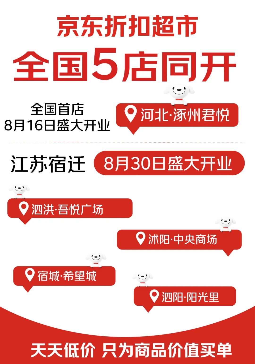 整個8月份,京東折扣超市五店同開,其中序幕始于8月16日的河北涿州首店。