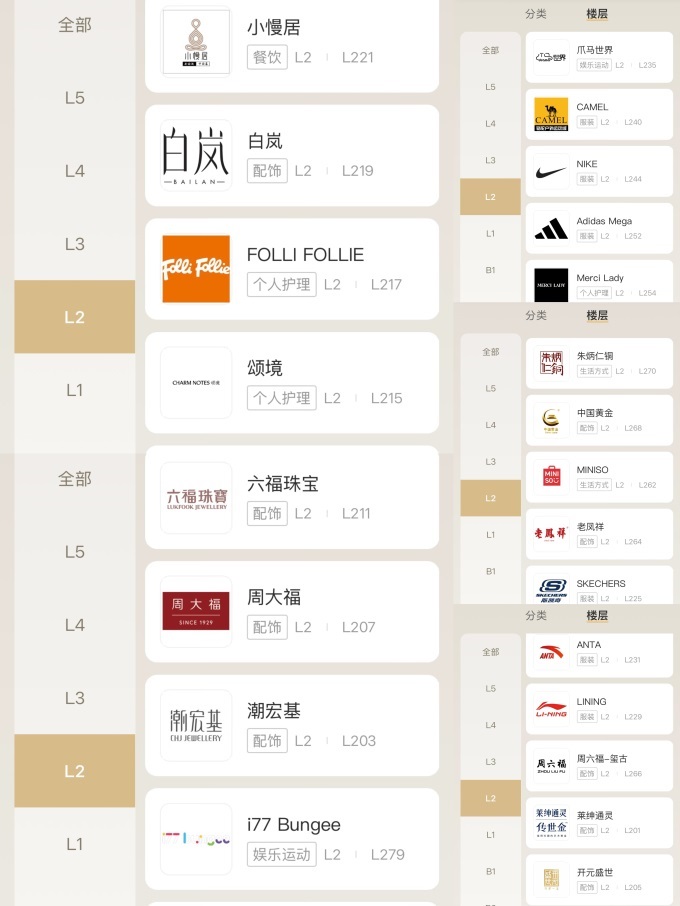 開業(yè)臨近,項目的品牌也悉數(shù)曝光,從B2至5F分別如下: