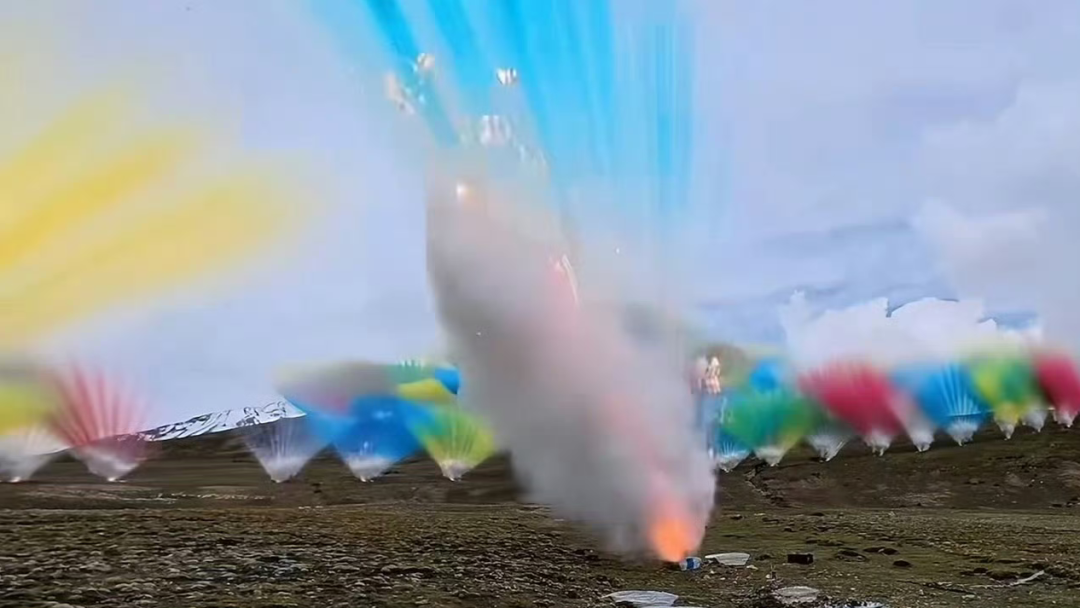 所謂“升龍”,就是在海拔5500米的喜馬拉雅山脊上空,騰空升起的七彩煙花。