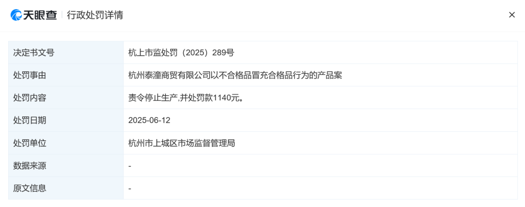 天眼查顯示,今年6月,泰蘭尼斯一款兒童涼鞋,在杭州當?shù)厥斜O(jiān)局的抽檢中,因可拆卸的小附件項目不符合標準,而被檢驗機構(gòu)判定為不合格產(chǎn)品。