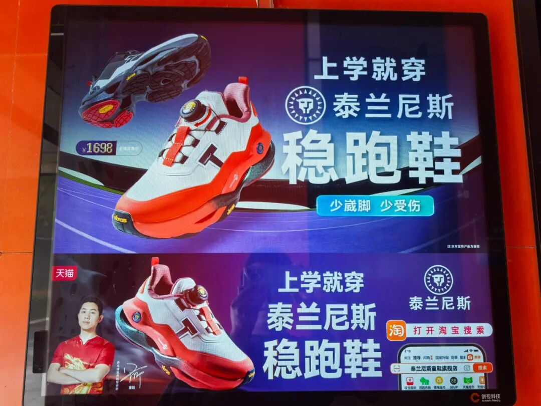 “泰蘭尼斯穩(wěn)穩(wěn)鞋,少摔跤,走得穩(wěn)”,“穿泰蘭尼斯穩(wěn)穩(wěn)鞋,穩(wěn)穩(wěn)第一步,高光每一步!