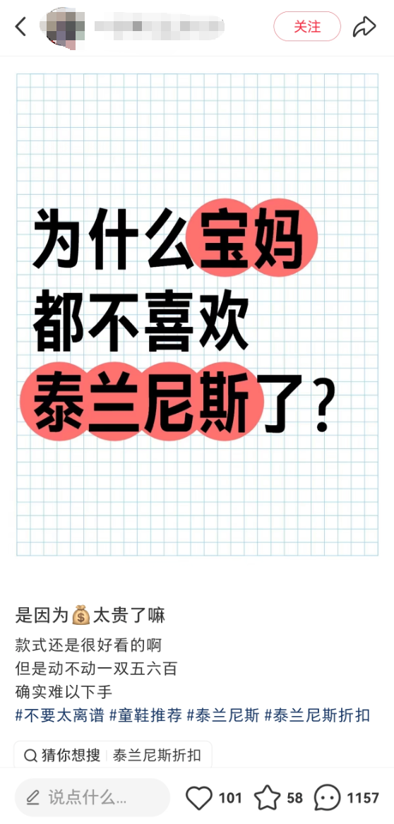 一條討論“為什么寶媽都不喜歡泰蘭尼斯了”的筆記下,評論上千條。網(wǎng)友討論的重點主要集中在價格、性能和質(zhì)量。